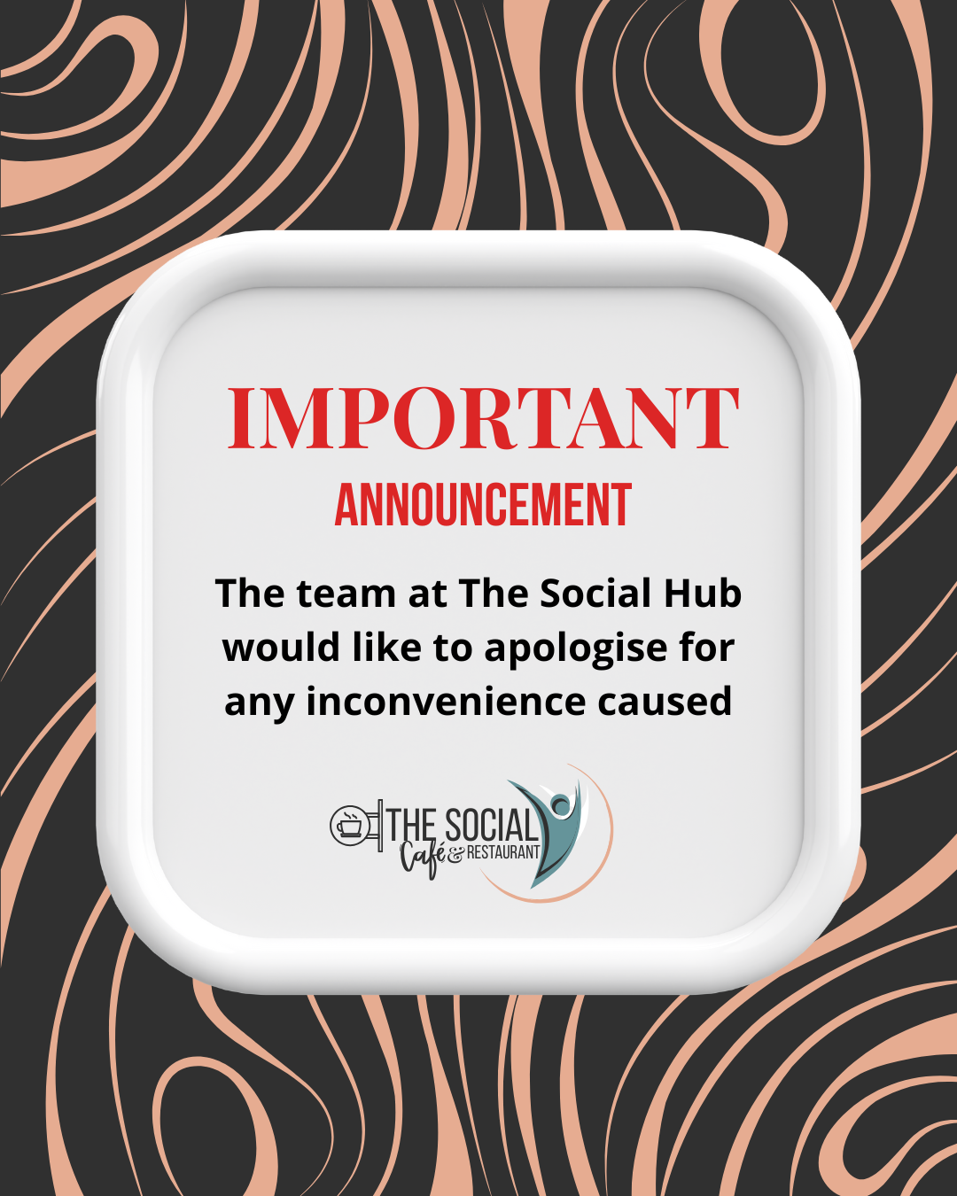 The team at The Social Hub would like to apologise for any inconvenience caused and we will provide updates as they become available.